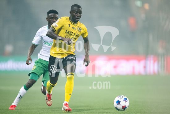 2919546 ESTOCOLMO, SUECIA - 4 DE ABRIL: Abdoulie Manneh de Mjallby AIF (19) durante o jogo de futebol Allsvenskan entre Hammarby IF e Mjallby AIF em 3Arena, Estocolmo, Suecia, em 4 de abril de 2026. (Philip Kangas / SPP)