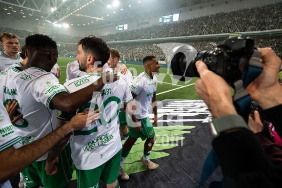 2919512 ESTOCOLMO, SUECIA - 4 DE ABRIL: Jogadores do Hammarby comemoram apos o jogo de futebol Allsvenskan entre Hammarby IF e Mjallby AIF na 3Arena, Estocolmo, Suecia, em 4 de abril de 2026. (Philip Kangas / SPP)