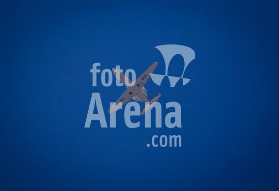 990_05_3-Sport-SkyD-Mil_10HR San Diego, California: August 3, 1927 A Navy 'daredevil' from the Coronado Naval Air Station jumps from an airplane using two parachutes, both of which are open.