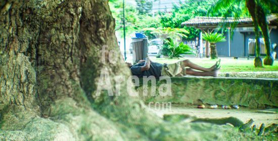 2911933 Homem dormindo na praça da mangueira, no Perequê, em Ilhabela, SP, na tarde desta terça-feira, dia 17 de março.