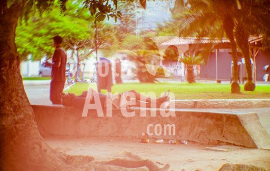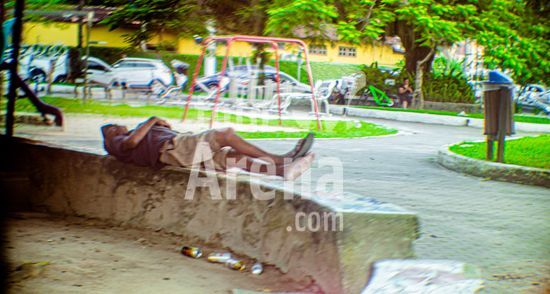 2911935 Homem dormindo na praça da mangueira, no Perequê, em Ilhabela, SP, na tarde desta terça-feira, dia 17 de março.