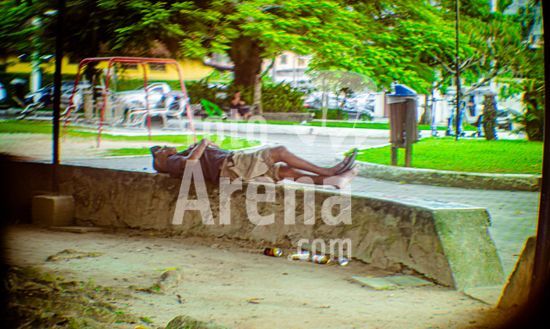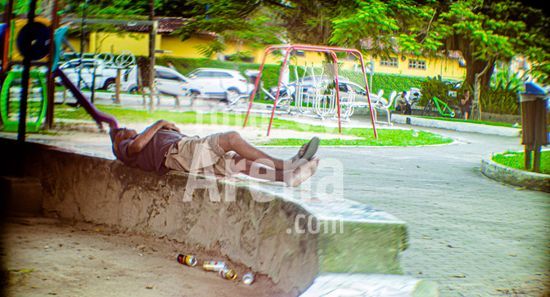 2911934 Homem dormindo na praça da mangueira, no Perequê, em Ilhabela, SP, na tarde desta terça-feira, dia 17 de março.