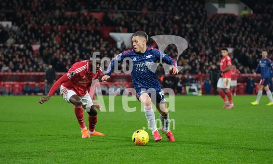 2869401 Leandro Trossard, do Arsenal, e Ibrahim Sangare, do Nottingham Forest, em acao durante a partida de futebol da Premier League entre Nottingham Forest e Arsenal, no City Ground, em Nottingham. (Paul Bonser/Sports Press Photo / SPP)
