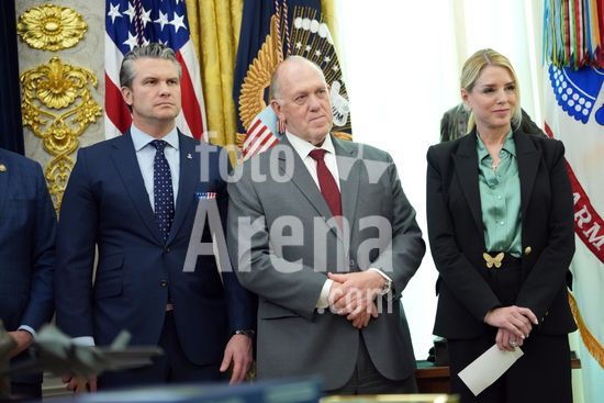 ny240326154412 From left, Defense Secretary Pete Hegseth; Tom Homan, the White House border czar; and Attorney General Pam Bondi look on as President Donald Trump speaks at the swearing-in ceremony for Secretary of Homeland Security Markwayne Mullin in the Oval Office on Tuesday, March 24, 2026. (Doug Mills/The New York Times/Fotoarena)