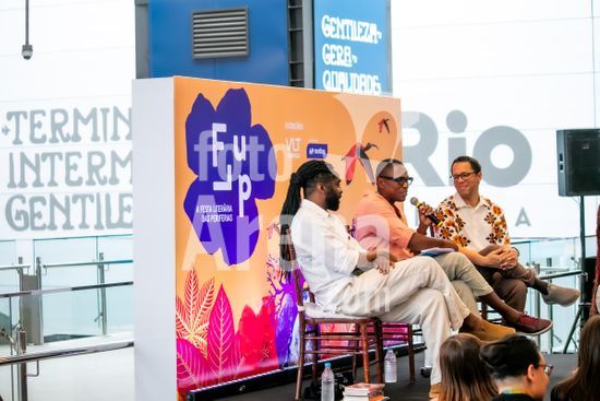 2847592 Na tarde desta segunda feira (24) aconteceu no Terminal Gentileza, a mesa ?Reescrever-se, os livros como espelhos? com os escritores Lázaro Ramos e Itamar Vieira Junior. O Evento faz parte da décima quinta edição da Flup (Festa Literária das Periferias) que está acontecendo desde o dia 19 e vai até o dia 30 de novembro no Viaduto Negrão de Lima em Madureira. A mesa que foi mediada pelo Evandro Luiz da Conceição foi uma realização Flup e Motiva.