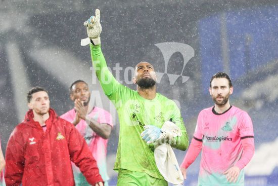 2881807 O goleiro Thimothee Lo-Tutala (29 Doncaster Rovers) apos a disputa de penaltis das quartas de final do EFL Vertu Trophy entre Huddersfield Town e Doncaster Rovers no Accu Stadium em Huddersfield, Inglaterra, em 10 de fevereiro de 2026. (Sean Chandler / SPP)