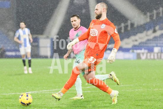 2881824 O goleiro Jak Alnwick (31, Huddersfield Town) controla a bola durante a partida das quartas de final do EFL Vertu Trophy entre Huddersfield Town e Doncaster Rovers no Accu Stadium em Huddersfield, Inglaterra, em 10 de fevereiro de 2026. (Sean Chandler / SPP)