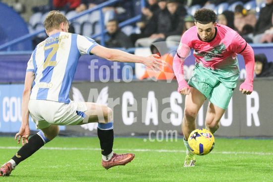 2881826 Bobby Wales (24 Huddersfield Town) controla a bola durante a partida das quartas de final do EFL Vertu Trophy entre Huddersfield Town e Doncaster Rovers no Accu Stadium em Huddersfield, Inglaterra, em 10 de fevereiro de 2026. (Sean Chandler / SPP)