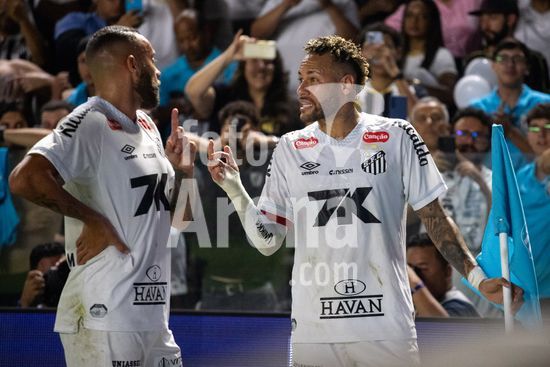 2843445 Neymar e Guilherme durante a partida entre Santos e Palmeiras, realizada na noite deste sábado (15) e válida pela 13ª rodada do Brasileirão, no Estádio Urbano Caldeira, a Vila Belmiro, em Santos, SP.