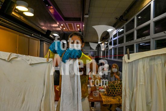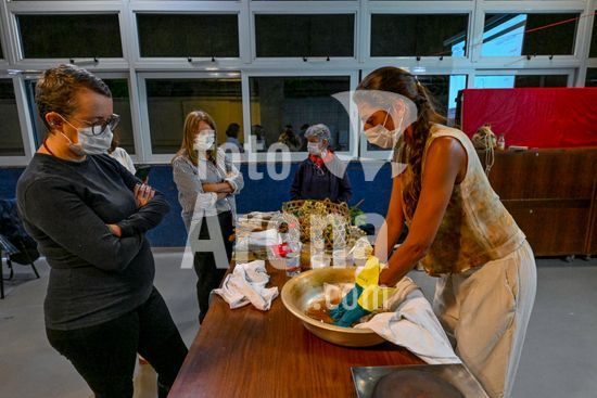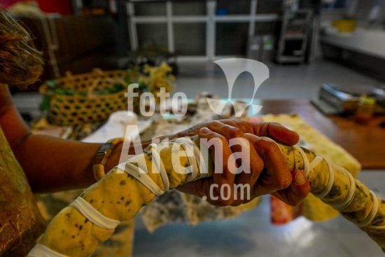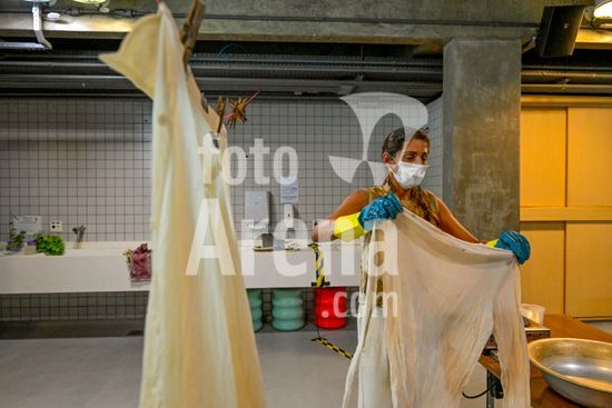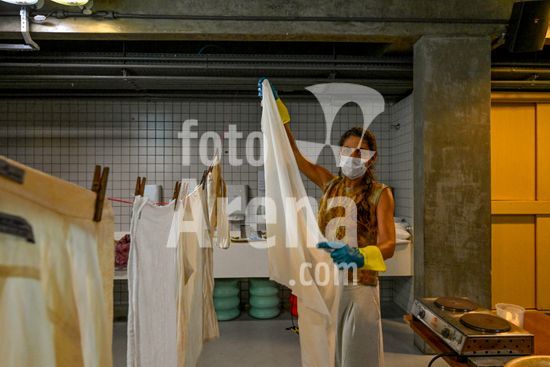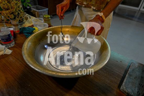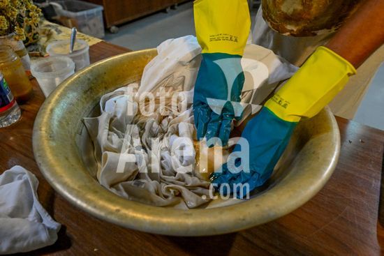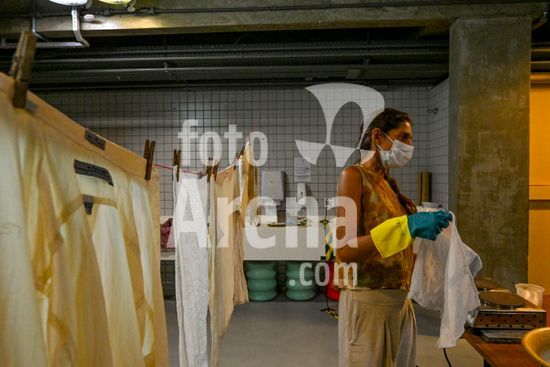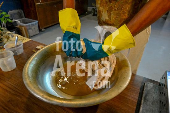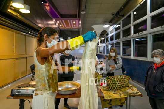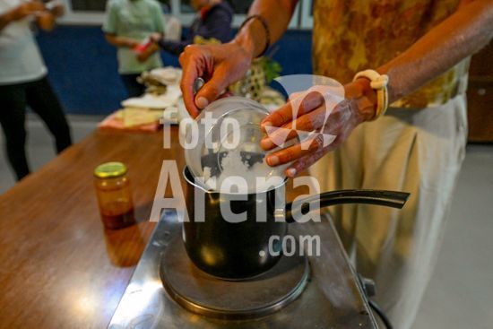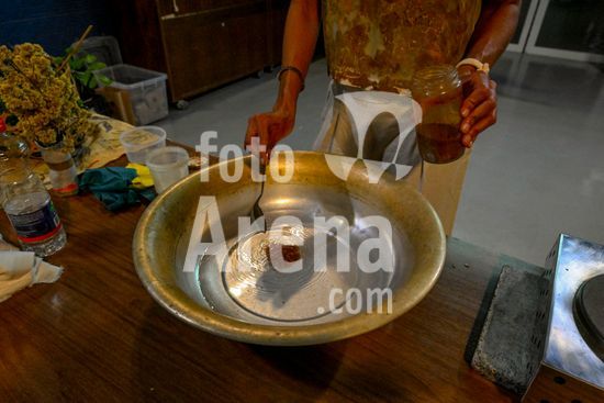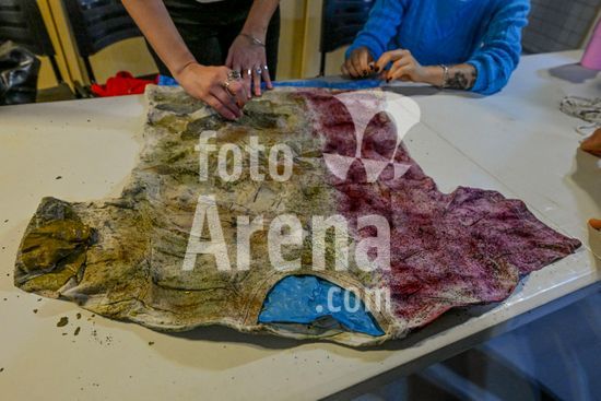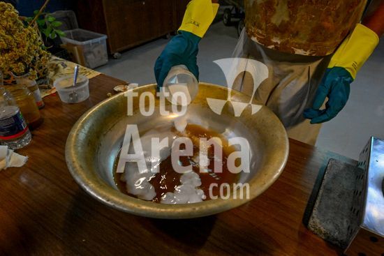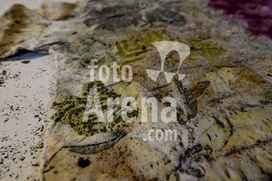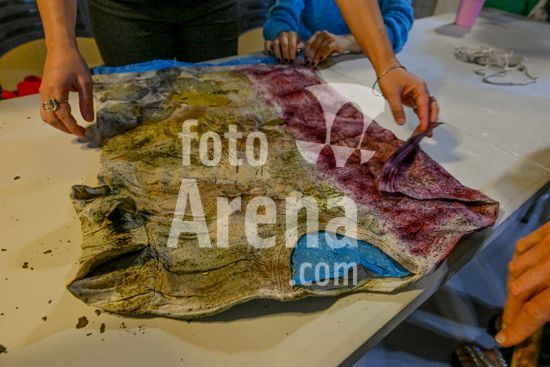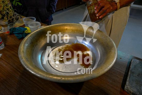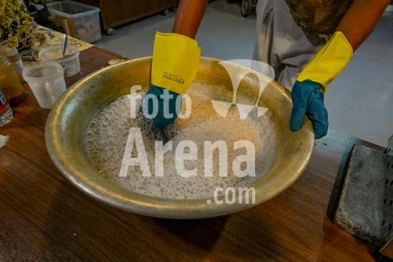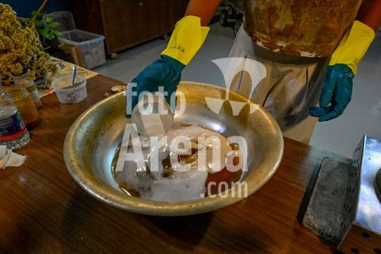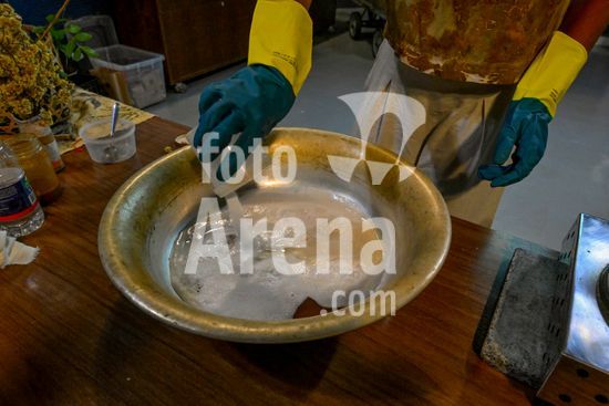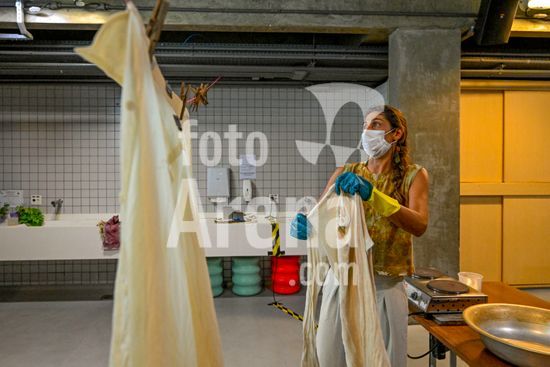 Segundo dia do curso de Impressão Botanica com a artesão Raquel Toledo Cartaxo onde foi ensinado a parte de mordentação , que é a parte de preparo dos tecidos para receber a impressão botanica envolve medidas e pesagens de produtos quimicos volateis de baixa toxidade , mas aconselhavel o uso de mascara .