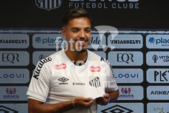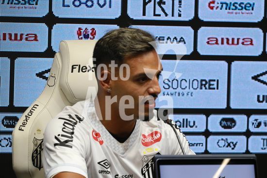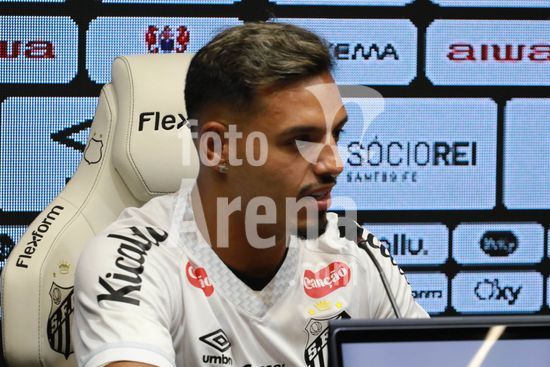 2868873 O Santos FC realiza coletiva de imprensa para apresentação oficial do volante Gabriel Menino, do Atlético-MG, por empréstimo de uma temporada, até 31 de dezembro deste ano, com uma cláusula com opção de compra ao fim da cessão temporária. Na foto Alison.