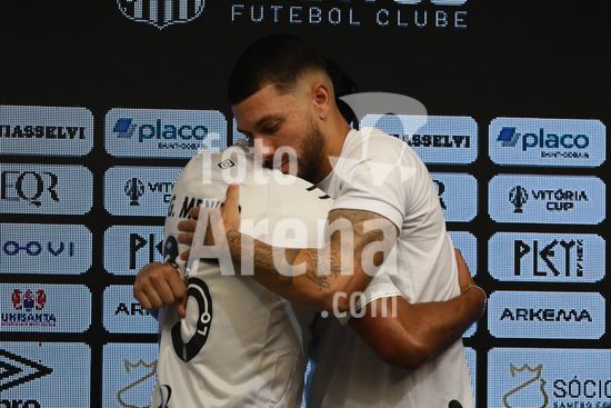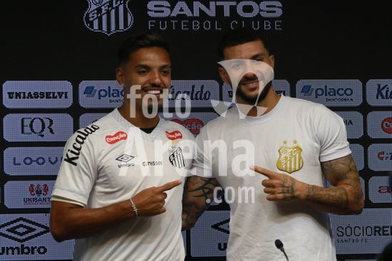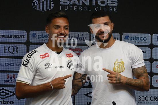 2868869 O Santos FC realiza coletiva de imprensa para apresentação oficial do volante Gabriel Menino, do Atlético-MG, por empréstimo de uma temporada, até 31 de dezembro deste ano, com uma cláusula com opção de compra ao fim da cessão temporária. Ex-jogador Alison apresentando Gabriel.