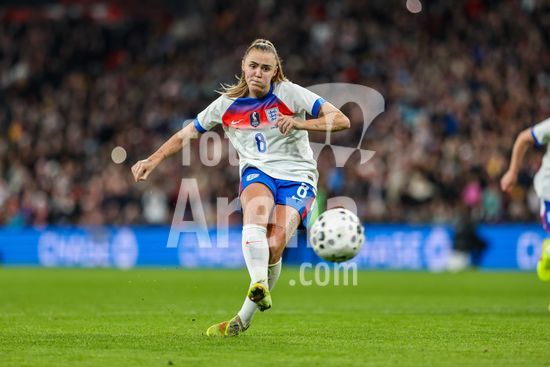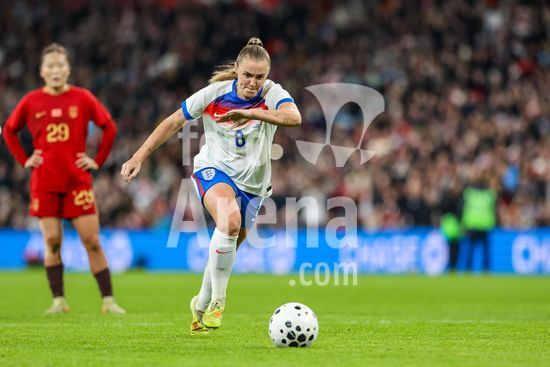 2850270 Georgia Stanway (8 Inglaterra) cobra um penalti durante o amistoso internacional entre Inglaterra e China no Estadio de Wembley em Londres, Inglaterra. (Leiting Gao / SPP)