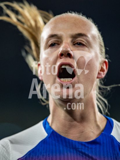 2850258 Beth Mead (7 Inglaterra) comemora apos marcar o segundo gol de sua equipe durante o amistoso internacional entre Inglaterra e China no Estadio de Wembley em Londres, Inglaterra. (Leiting Gao / SPP)