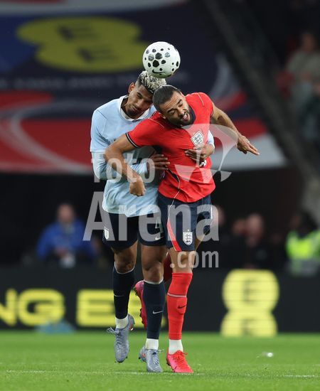2913259 LONDRES, INGLATERRA, 27 DE MARCO: Dominic Calvert-Lewin, da Selecao Inglesa, disputa a bola aerea com Ronald Araujo, da Selecao Uruguaia, durante o amistoso internacional entre Inglaterra e Uruguai, no Estadio de Wembley, em Londres, Inglaterra, em 27 de marco. (Foto de Daniel Weir) (Daniel Weir/Sports Press Photo / SPP)