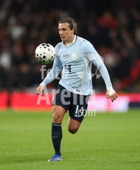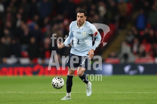 2913041 LONDRES, INGLATERRA, 27 DE MARCO: Maximiliano Araujo, da Selecao Uruguaia, durante a partida amistosa internacional entre Inglaterra e Uruguai, no Estadio de Wembley, em Londres, Inglaterra, em 27 de marco. (Foto de Daniel Weir) (Daniel Weir/Sports Press Photo / SPP)