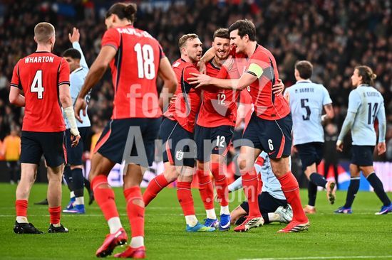 2913275 LONDRES, INGLATERRA - 27 DE MARCO: Ben White, da Inglaterra, comemora com seus companheiros de equipe apos marcar o primeiro gol da selecao durante o amistoso internacional entre Inglaterra e Uruguai no Estadio de Wembley, em 27 de marco de 2026, em Londres, Inglaterra. (Yaroslav Dunka / SPP)