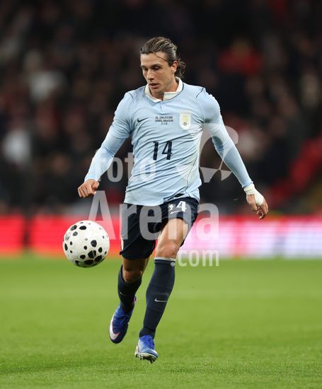 2913063 LONDRES, INGLATERRA, 27 DE MARCO: Maximiliano Araujo (20 Uruguai) durante o amistoso internacional entre Inglaterra e Uruguai no Estadio de Wembley em 26 de marco de 2026 em Londres, Inglaterra (Foto de Alexander Canillas/Sports Press Photo) (Alexander Canillas/SPP)