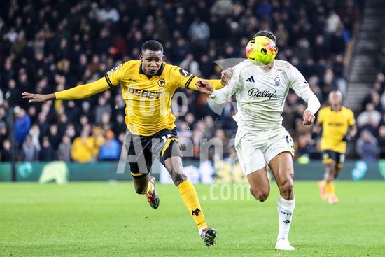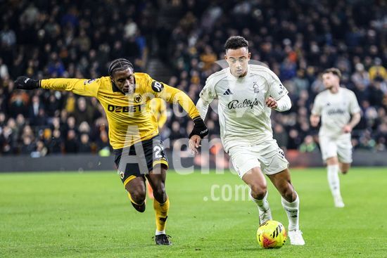 2852674 Dan Ndoye (14 Nottingham Forest) com a bola durante a partida da Premier League entre Wolverhampton Wanderers e Nottingham Forest no estadio Molineux em Wolverhampton, Inglaterra. (Natalie Mincher/SPP)