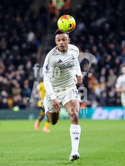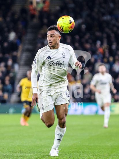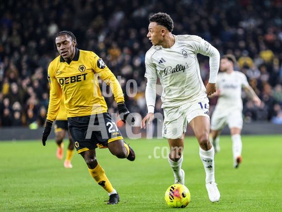 2852675 Dan Ndoye (14 Nottingham Forest) com a bola durante a partida da Premier League entre Wolverhampton Wanderers e Nottingham Forest no estadio Molineux em Wolverhampton, Inglaterra. (Natalie Mincher/SPP)