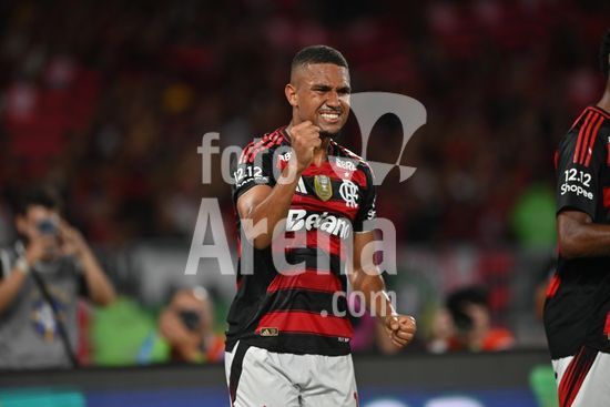 2852723 Flamengo x Ceará realizada no Estádio do Maracanã pelo Campeonato Brasileiro 2025, serie A, dela 37ª rodada, na noite desta quarta-feira (03), no Rio de Janeiro, RJ.Samuel Lino comemora gol