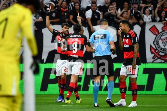 2910240 Lucas Paquetá do Flamengo comemora o gol, durante partida entre Corinthians x Flamengo, válida pela oitava rodada do Campeonato Brasileiro de Futebol 2026, neste domingo (22), na Neo Química Arena, SP.