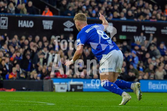 2854535 Sindre Walle Egeli (8 Ipswich Town) comemora o primeiro gol da equipe durante a partida do Sky Bet Championship entre Ipswich Town e Coventry City FC no Portman Road em Ipswich, Inglaterra. (Foto de Keeran Marquis/Sports Press Photo/SPP) (Keeran Marquis/SPP)