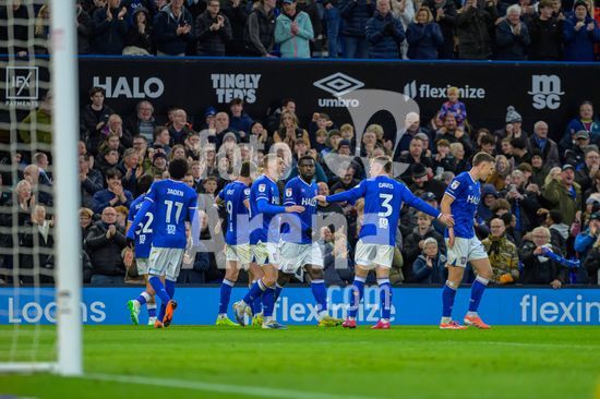 2854539 Jogadores do Ipswich Town comemoram o primeiro gol da equipe durante a partida do Sky Bet Championship entre Ipswich Town e Coventry City FC, no Portman Road, em Ipswich, Inglaterra. (Foto de Keeran Marquis/Sports Press Photo/SPP) (Keeran Marquis/SPP)