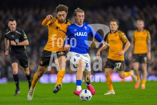 2897050 IPSWICH, INGLATERRA - 3 de marco: Lewis Koumas, do Hull City, e Dara O'Shea, do Ipswich Town, durante a partida do Sky Bet Championship entre Ipswich Town e Hull City, no Portman Road, em 3 de marco de 2026, em Ipswich, Inglaterra. (Keeran Marquis/SPP)