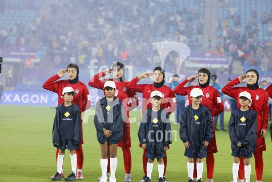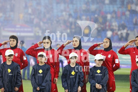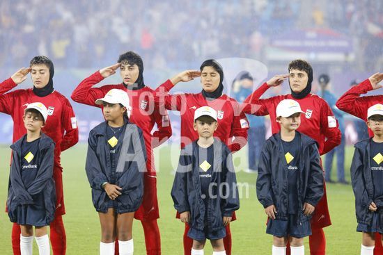 2900581 GOLD COAST, AUSTRALIA - 8 DE MARCO Jogadoras da selecao feminina do Ira prestam homenagem ao hino nacional antes da partida da Copa Asiatica Feminina entre a Republica Islamica do Ira e as Filipinas, no Estadio Gold Coast, em 8 de marco de 2026, em Gold Coast, Australia. (Matthew Starling / SPP)