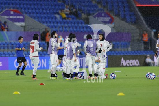 2900579 GOLD COAST, AUSTRALIA - 8 DE MARCO Jogadoras da selecao feminina do Ira durante o aquecimento antes da partida da Copa Asiatica Feminina entre a Republica Islamica do Ira e as Filipinas, no Estadio Gold Coast, em 8 de marco de 2026, em Gold Coast, Australia. (Matthew Starling / SPP)