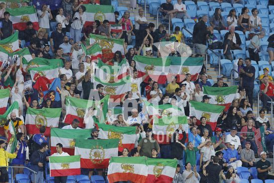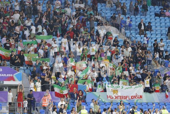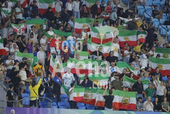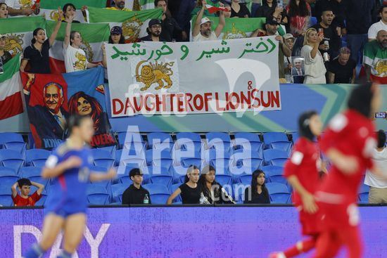 2900609 GOLD COAST, AUSTRALIA - 8 DE MARCO Torcedores do Ira exibem cartazes em apoio a selecao feminina iraniana durante a partida da Copa Asiatica Feminina entre a Republica Islamica do Ira e as Filipinas, no Estadio Gold Coast, em 8 de marco de 2026, em Gold Coast, Australia. (Matthew Starling / SPP)