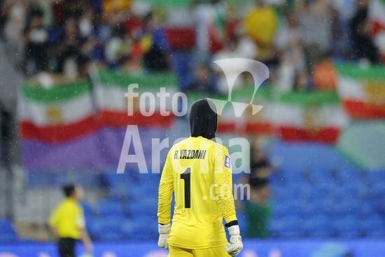 2900608 GOLD COAST, AUSTRALIA - 8 DE MARCO A goleira Raha Yazdani (1 IR Ira) e vista em frente a torcedores iranianos que agitam bandeiras durante a partida da Copa Asiatica Feminina entre a Republica Islamica do Ira e as Filipinas no Estadio Gold Coast em 8 de marco de 2026 em Gold Coast, Australia. (Matthew Starling / SPP)