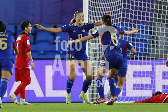 2900598 GOLD COAST, AUSTRALIA - 8 DE MARCO Chandler McDaniel (10 Filipinas) comemora apos marcar um gol com Sara Eggesvik (8 Filipinas) durante a partida da Copa Asiatica Feminina entre a Republica Islamica do Ira e as Filipinas no Estadio Gold Coast em 8 de marco de 2026 em Gold Coast, Australia. (Matthew Starling / SPP)