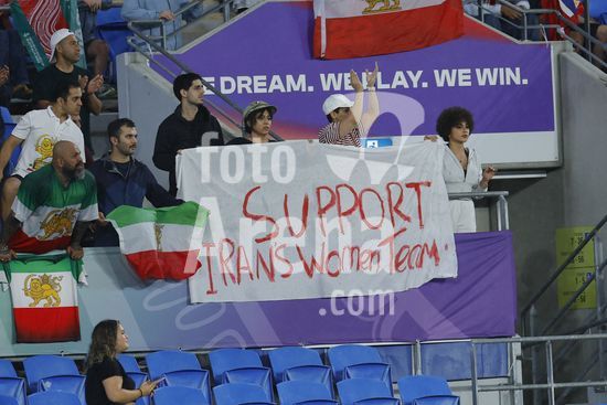 2900610 GOLD COAST, AUSTRALIA - 8 DE MARCO Torcedores do Ira exibem cartazes em apoio a selecao feminina iraniana durante a partida da Copa Asiatica Feminina entre a Republica Islamica do Ira e as Filipinas, no Estadio Gold Coast, em 8 de marco de 2026, em Gold Coast, Australia. (Matthew Starling / SPP)