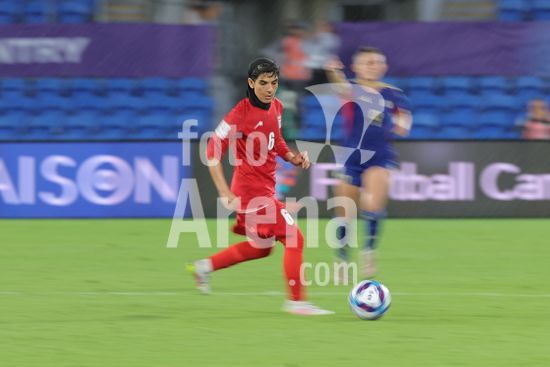 2900615 GOLD COAST, AUSTRALIA - 8 DE MARCO Zahra Sarbali (6 IR Ira) corre com a bola com efeito de desfoque de movimento durante a partida da Copa Asiatica Feminina entre a Republica Islamica do Ira e as Filipinas no Estadio Gold Coast em 8 de marco de 2026 em Gold Coast, Australia. (Matthew Starling / SPP)