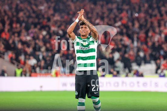 2854270 Alisson Santos, avancado do Sporting CP, agradece o apoio durante o jogo da Primeira Liga entre SL Benfica e Sporting CP, no Estadio da Luz, no dia 5 de dezembro de 2025, em Lisboa, Portugal. Liga Portugal Betclic - SL Benfica vs Sporting CP (Valter Gouveia/SPP)