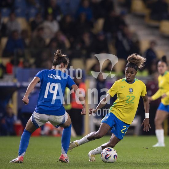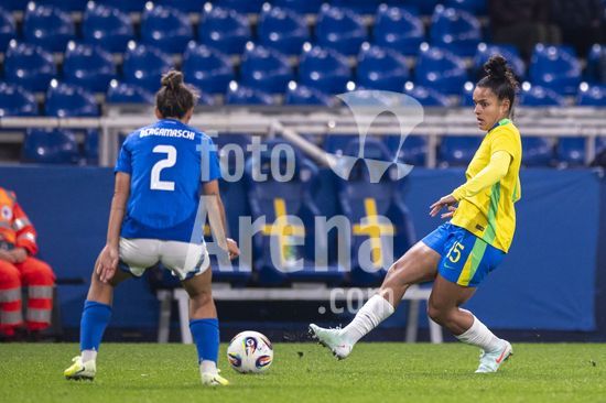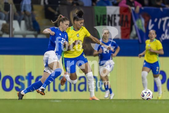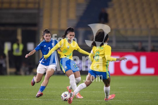 2832112 Bia Zaneratto do Brasil e Eva Schatzer da Italia durante amistoso da Seleção Brasileira Feminina contra a Seleção da Italia realizado no Estádio Ennio Tardini, em Parma Italia, nesta terça-feira, 28. (João Brandino/Sports Press Photo)