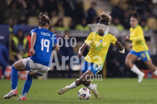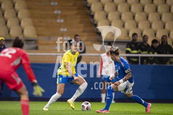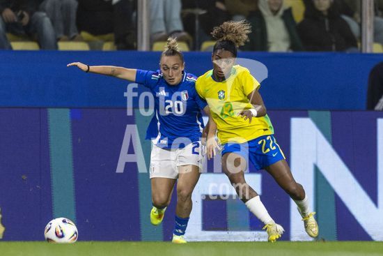 2832098 Giada Greggi da Italia e Ary Borges do Brasil durante amistoso da Seleção Brasileira Feminina contra a Seleção da Italia realizado no Estádio Ennio Tardini, em Parma Italia, nesta terça-feira, 28. (João Brandino/Sports Press Photo)