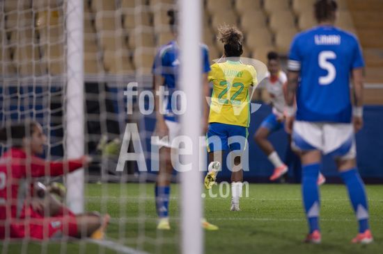 2832079 Luany do Brasil imediamente antes que marcar gol durante amistoso da Seleção Brasileira Feminina contra a Seleção da Italia realizado no Estádio Ennio Tardini, em Parma Italia, nesta terça-feira, 28. (João Brandino/Sports Press Photo)