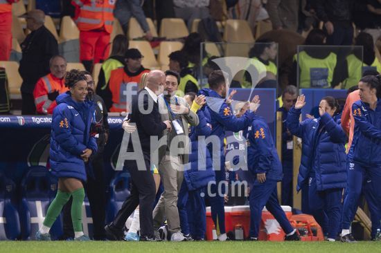 2832097 Arthur Elias, Tecnico do Brasil and Andrea Soncin Tecnico da Italia apos o Brasil ganhar por 0-1 o amistoso da Seleção Brasileira Feminina contra a Seleção da Italia realizado no Estádio Ennio Tardini, em Parma Italia, nesta terça-feira, 28. (João Brandino/Sports Press Photo)