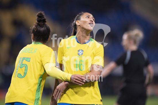 2832040 Ary Borges do Brasil comemora apos Luany do Brasil marcar primeiro gol do Brasil durante amistoso da Seleção Brasileira Feminina contra a Seleção da Italia realizado no Estádio Ennio Tardini, em Parma Italia, nesta terça-feira, 28. (Will Anacleto/Sports Press Photo)