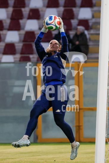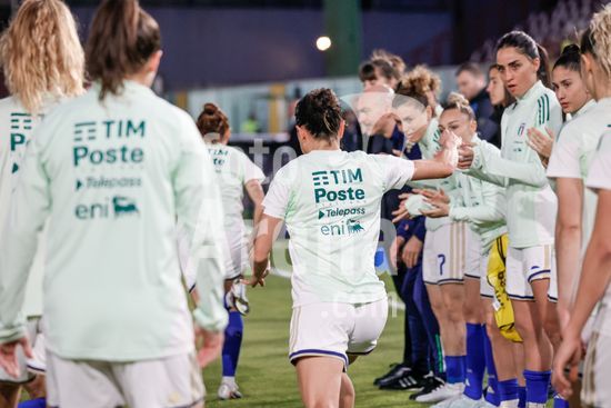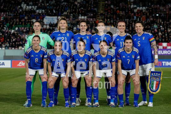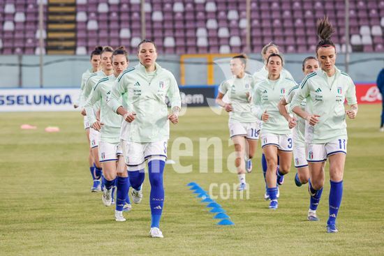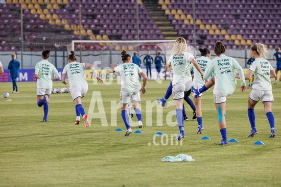 2897875 Treino da selecao feminina da Italia durante o aquecimento para o jogo do Grupo A1 das Eliminatorias Europeias entre Italia e Suecia, no Estadio Granillo, em Reggio Calabria, Italia. (FRANCESCO FARINA / SPP)
