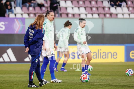 2897873 Treino da selecao feminina da Italia durante o aquecimento para o jogo do Grupo A1 das Eliminatorias Europeias entre Italia e Suecia, no Estadio Granillo, em Reggio Calabria, Italia. (FRANCESCO FARINA / SPP)