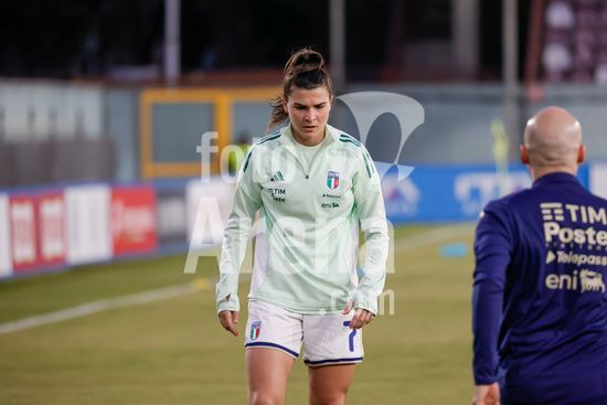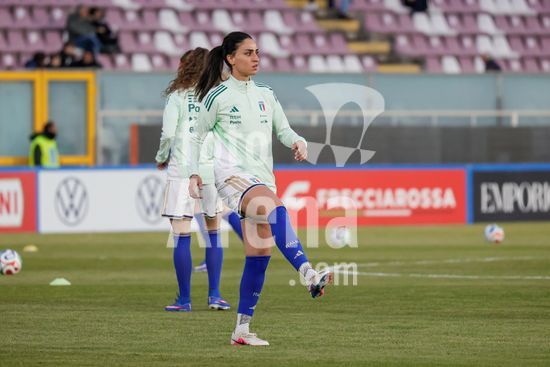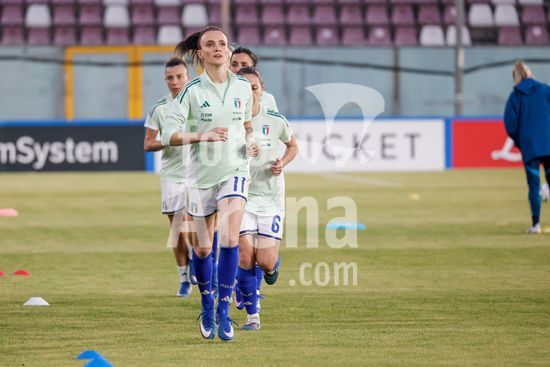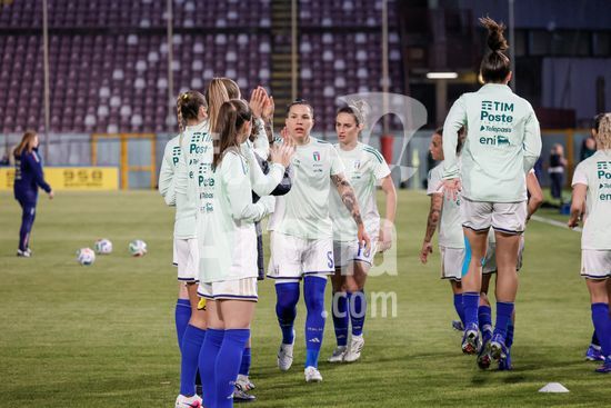 2897894 Treino da selecao feminina da Italia durante o aquecimento para o jogo do Grupo A1 das Eliminatorias Europeias entre Italia e Suecia, no Estadio Granillo, em Reggio Calabria, Italia. (FRANCESCO FARINA / SPP)