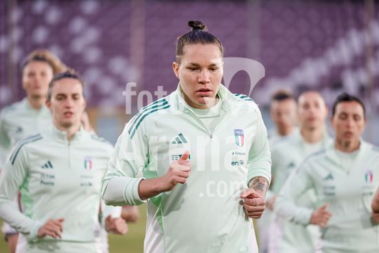 2897891 Treino da selecao feminina da Italia durante o aquecimento para o jogo do Grupo A1 das Eliminatorias Europeias entre Italia e Suecia, no Estadio Granillo, em Reggio Calabria, Italia. (FRANCESCO FARINA / SPP)