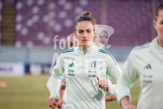 2897854 Treino da selecao feminina da Italia durante o aquecimento para o jogo do Grupo A1 das Eliminatorias Europeias entre Italia e Suecia, no Estadio Granillo, em Reggio Calabria, Italia. (FRANCESCO FARINA / SPP)