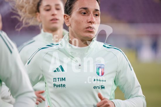 2897890 Treino da selecao feminina da Italia durante o aquecimento para o jogo do Grupo A1 das Eliminatorias Europeias entre Italia e Suecia, no Estadio Granillo, em Reggio Calabria, Italia. (FRANCESCO FARINA / SPP)