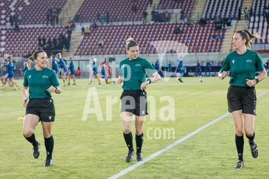 2897880 Treino de tres arbitros durante a partida das Eliminatorias Femininas para o Campeonato Europeu, Grupo A1, entre Italia e Suecia, no Estadio Oreste Granillo, em Reggio Calabria, Italia. (FRANCESCO FARINA / SPP)