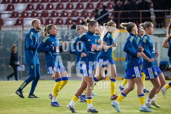 2897883 Treino da selecao feminina sueca durante o aquecimento para o jogo do Grupo A1 das Eliminatorias Europeias entre Italia e Suecia, no Estadio Granillo, em Reggio Calabria, Italia. (FRANCESCO FARINA / SPP)
